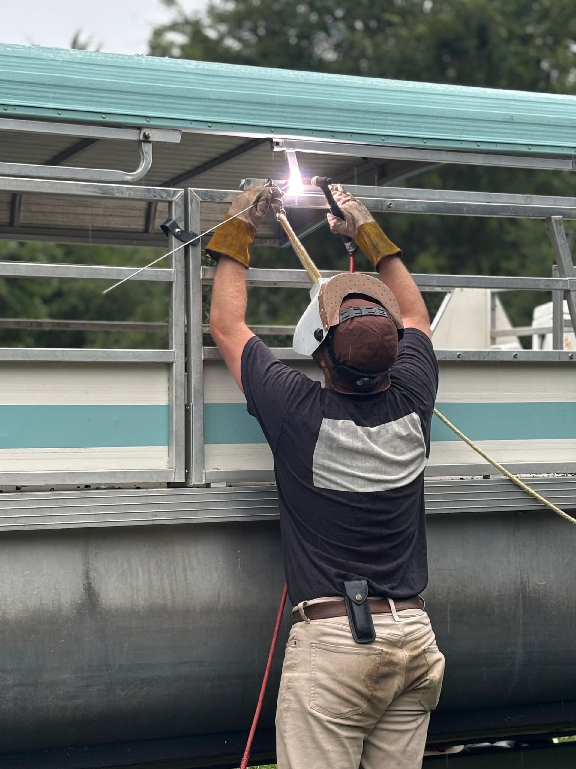 I offer mobile aluminum welding and light boat fabrication services. My work includes dog box repairs, pontoon crack repairs and pressure testing, jon boat crack repairs, and custom aluminum work such as fuel and water tanks, gates, handrails, and boat docks. Please note that I do not perform full boat restoration projects, major boat fabrications or boat paint work.